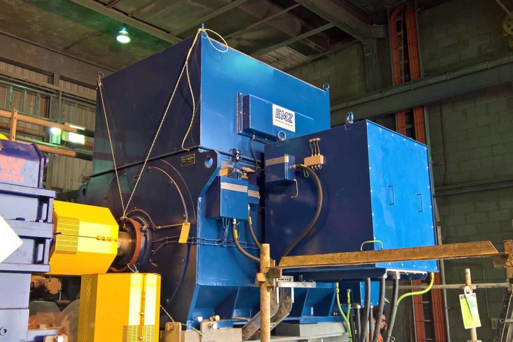 Der wassergekühlte EMZ Schleifringläufer Motor ASW 630-06 wurde austauschbar zur vorhandenen Alstom Maschine gefertigt und zusätzlich mit einer Kurzschluss – und Bürstenabhebevorrichtung ausgerüstet. Die Anlage wurde im Januar 2019 durch das EMZ Service Team erfolgreich in Betrieb genommen. In einem 12 Tage dauernden Stillstand wurde vor Ort unter vollständiger Einhaltung aller Arbeits- und Sicherheitsmaßnahmen der komplette Antriebsstrang gewechselt. Hierzu gehörten u.a. das von Firma SEW gelieferte Hauptgetriebe und der Hilfsantrieb, die Mittelspannungsschaltanlage, eine Fundamentanpassung mittels massiven Zwischenrahmens sowie die Erneuerung der Mittelspannungs- und Steuerkabel.