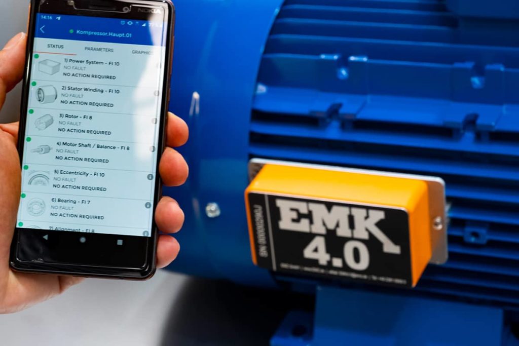 Mit dem intelligenten Motorsensor EMK 4.0 bringen wir eine Lösung in den Markt, die auf einfache Weise die vorrausschauende Wartung von Elektromotoren ermöglicht. Die batteriebetriebene Sensorbox lässt sich einfach montieren und benötigt dank des kompletten Datenhandlings in der Cloud sowie der WLAN-Kommunikation keine zusätzliche IT-Infrastruktur. Damit empfiehlt sich das System für alle Branchen in denen Elektromotoren im Einsatz sind. Indem der Sensor seinen Asynchronmotor eigenständig kennen lernt, arbeitet der EMK 4.0 unabhängig von bestimmten Motorenherstellern.