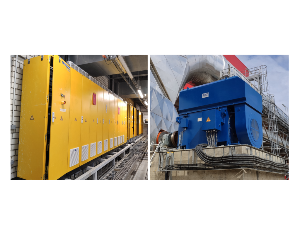 A powerful 2800 kW fan drive has been in successful operation in Kaluga, Russia since 2021. The EMZ motor with a rated voltage of 690 V is efficiently controlled by a CG Drives & Automation / Emotron FDU69 frequency converter, which was also supplied by EMZ. The fan is used to dry finely milled wood fibres and feed them into the production process. These fibres are pressed into MDF panels under pressure and increased temperature. Thanks to the speed-controlled drive, the feed can be flexibly adapted to the production quantity. This innovative drive concept ensures maximum operational reliability and plays a key role in the production of high-quality MDF panels.