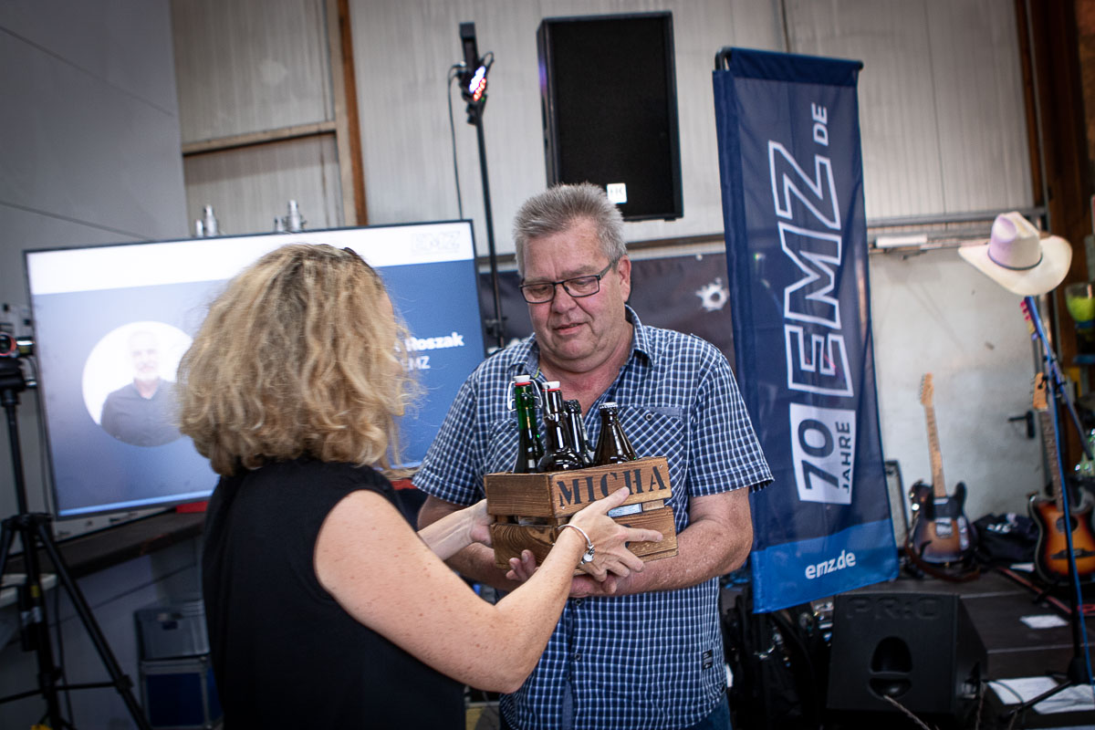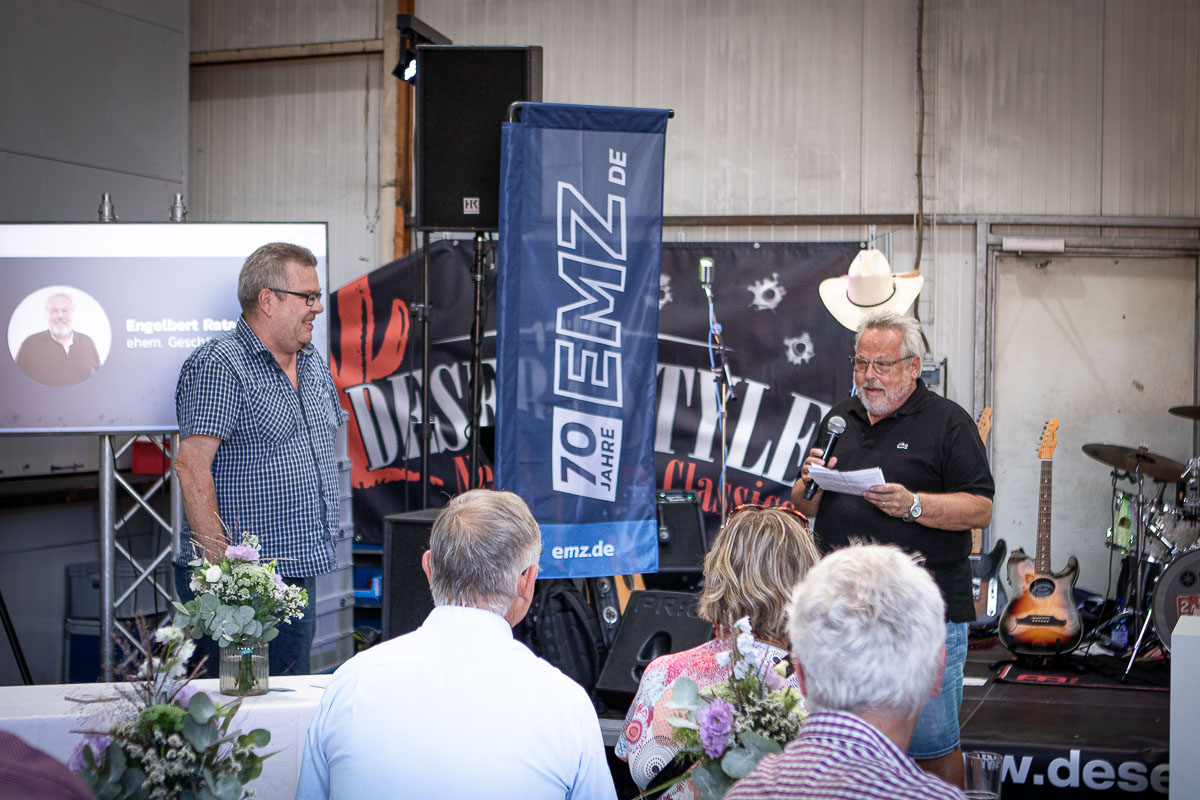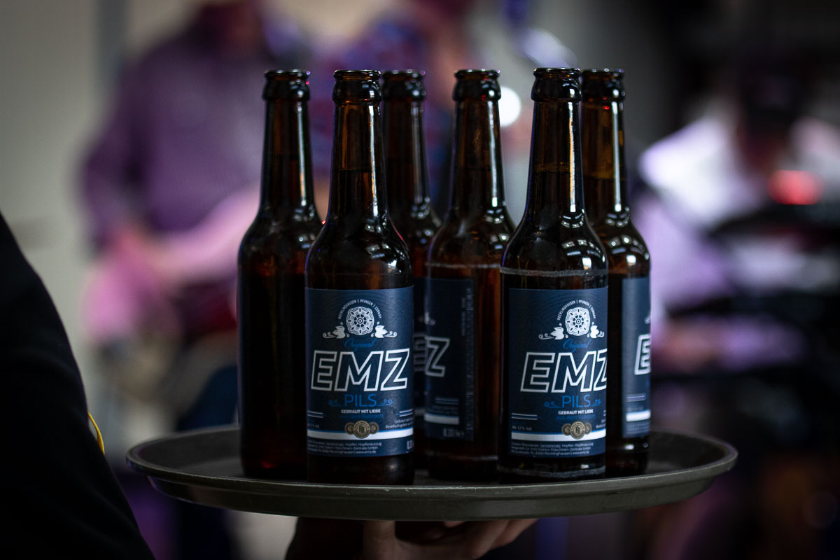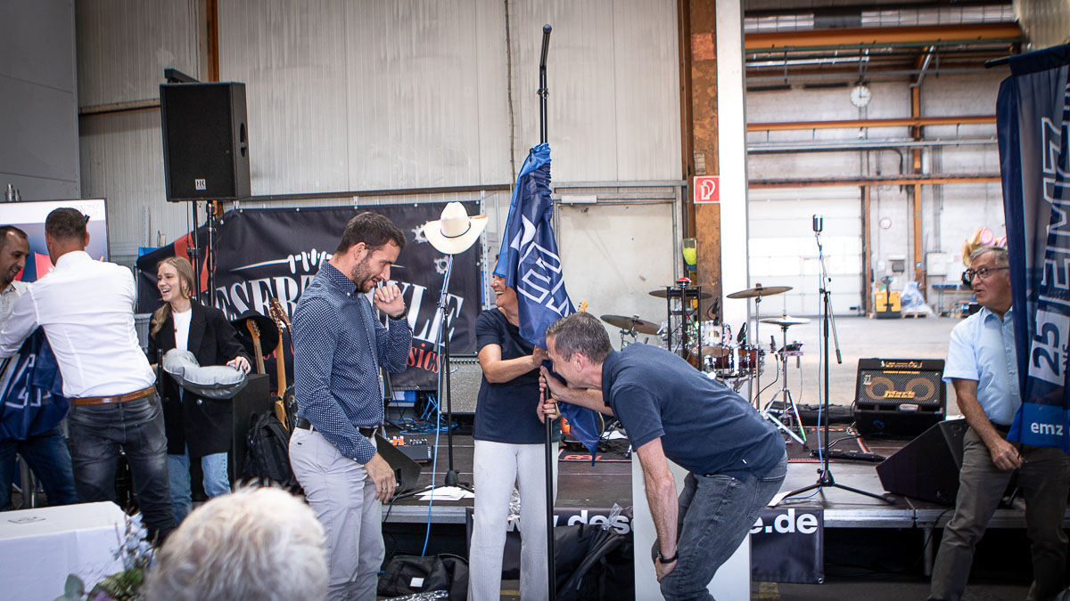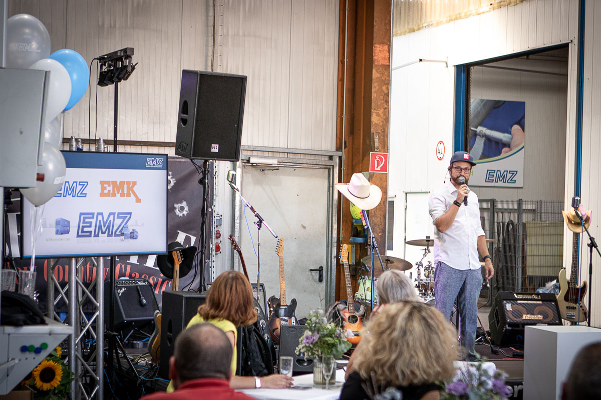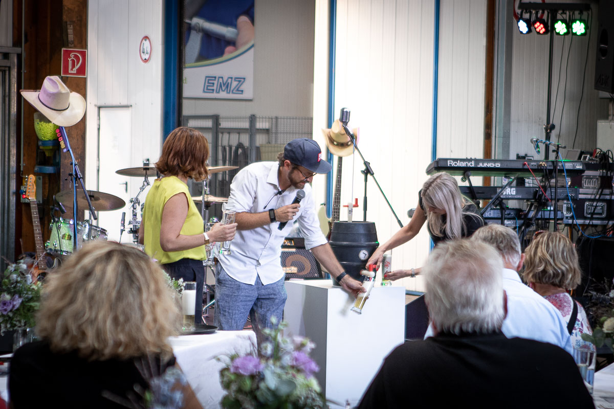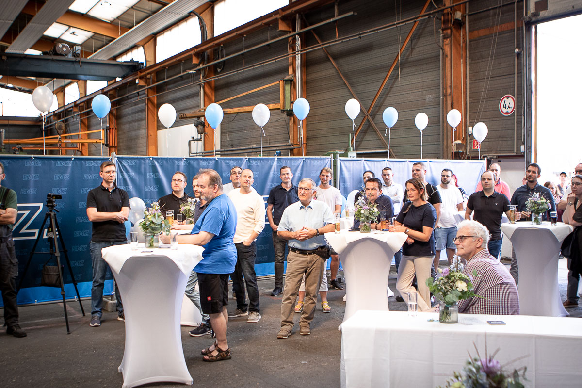 Offizieller Auftakt der Jubiläumsfeierlichkeit war Freitag, der 19. August 2022 am späten Nachmittag bei strahlend blauem Himmel und jeder Menge Sonnenschein auf dem Firmengelände der EMZ GmbH in Recklinghausen. Zahlreiche Gäste (darunter sowohl aktive als auch ehemalige Mitarbeiter), die der Einladung gefolgt waren, wurden von der Geschäftsführerin Deniz Beese und Geschäftsführer Dipl.-Ing. Benedikt Mathiaszyk mit kalten Getränken und einer Eröffnungsrede feierlich begrüßt. Nach der offiziellen Vorstellung des neuen Corporate Designs begann der ausgelassene festliche Teil, für dessen musikalische Untermalung die hiesige Country-Band „Desert Style“ sorgte. Währenddessen konnten Mitarbeiter und Ehemalige das eigens für das Firmenjubiläum gebraute und frisch durch die Geschäftsführung gezapfte EMZ-Bier verköstigen, erfrischende Cocktails und ein vielfältiges Outdoor-Buffet genießen.