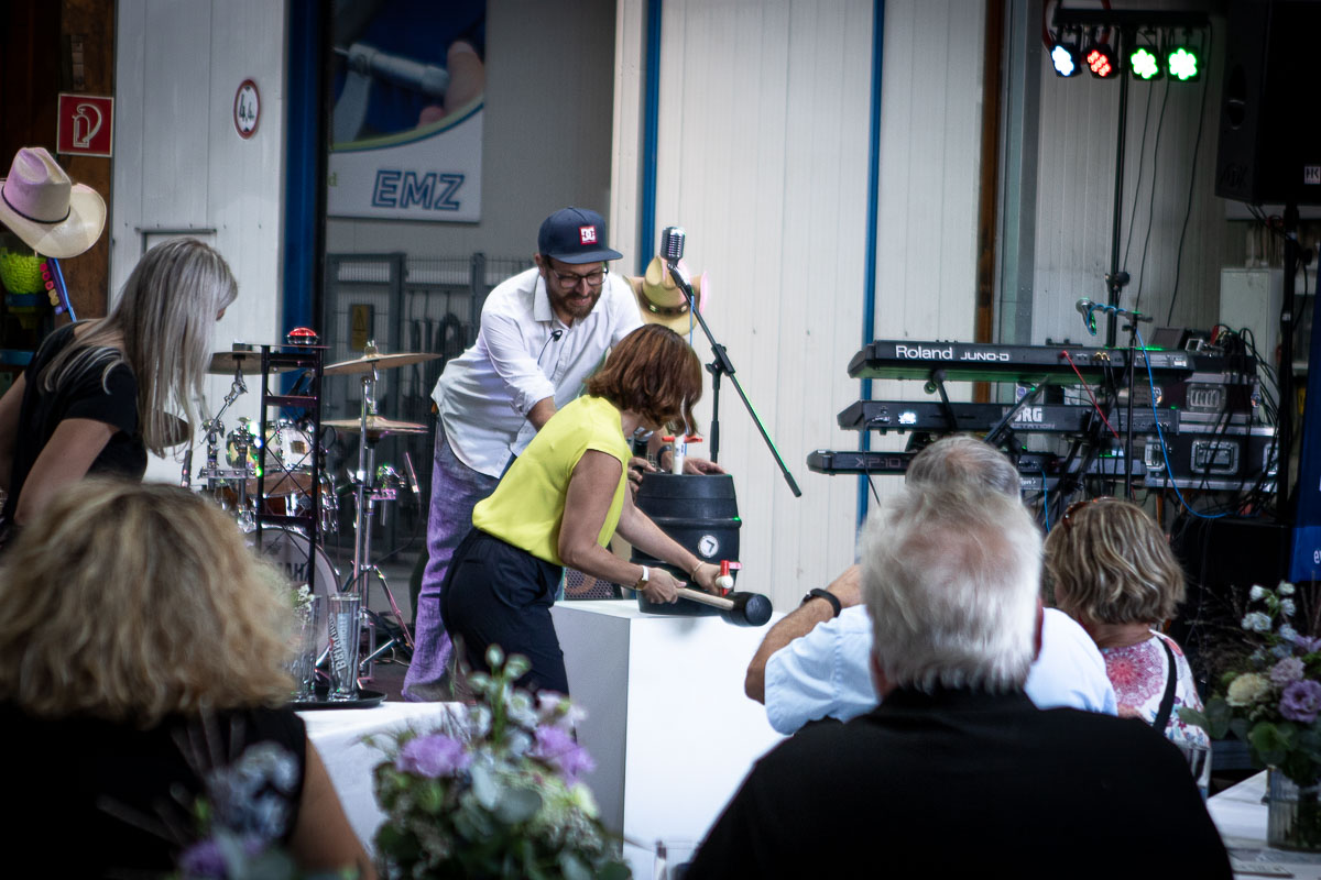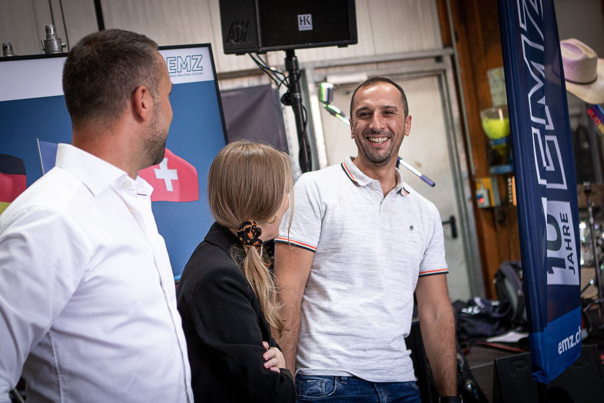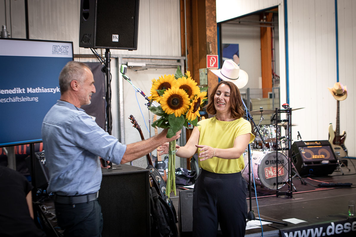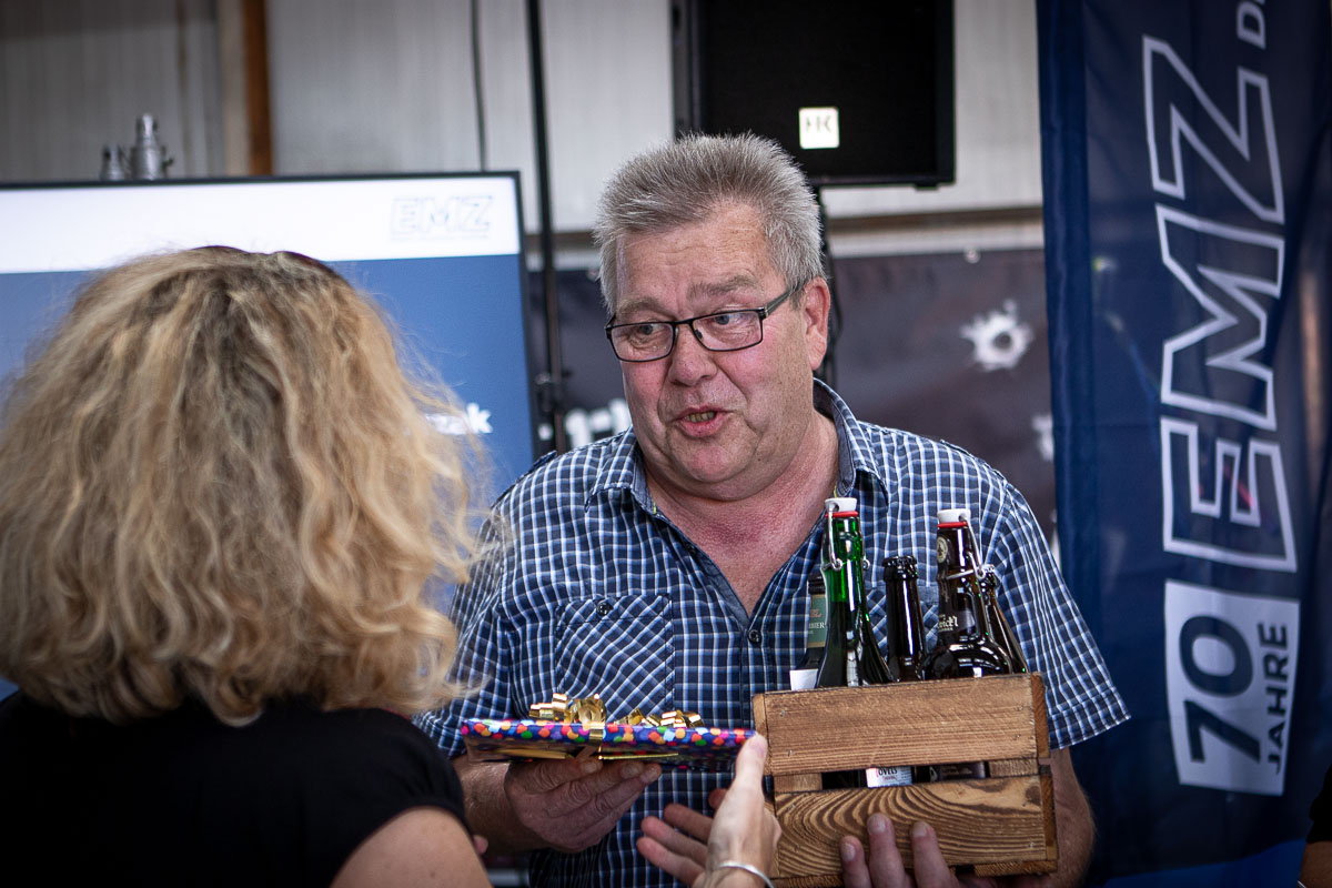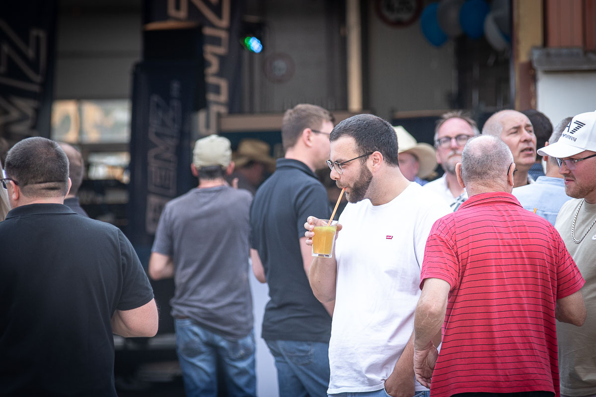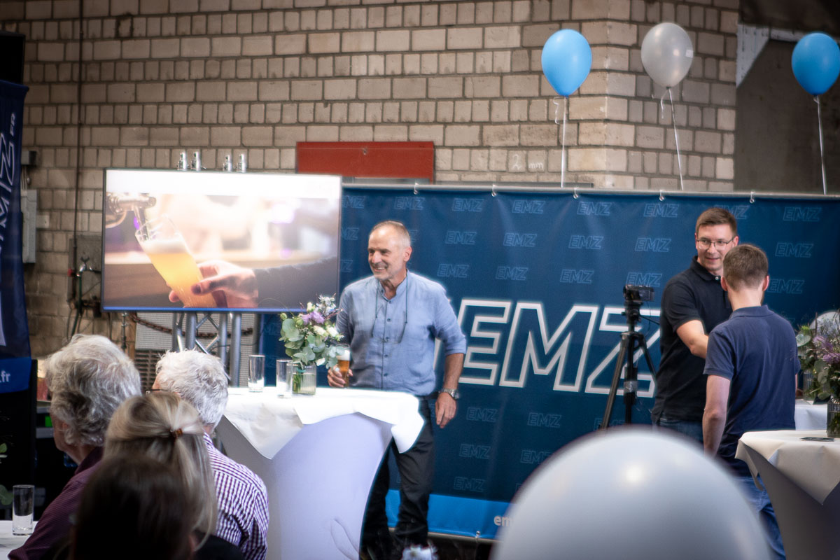 Offizieller Auftakt der Jubiläumsfeierlichkeit war Freitag, der 19. August 2022 am späten Nachmittag bei strahlend blauem Himmel und jeder Menge Sonnenschein auf dem Firmengelände der EMZ GmbH in Recklinghausen. Zahlreiche Gäste (darunter sowohl aktive als auch ehemalige Mitarbeiter), die der Einladung gefolgt waren, wurden von der Geschäftsführerin Deniz Beese und Geschäftsführer Dipl.-Ing. Benedikt Mathiaszyk mit kalten Getränken und einer Eröffnungsrede feierlich begrüßt. Nach der offiziellen Vorstellung des neuen Corporate Designs begann der ausgelassene festliche Teil, für dessen musikalische Untermalung die hiesige Country-Band „Desert Style“ sorgte. Währenddessen konnten Mitarbeiter und Ehemalige das eigens für das Firmenjubiläum gebraute und frisch durch die Geschäftsführung gezapfte EMZ-Bier verköstigen, erfrischende Cocktails und ein vielfältiges Outdoor-Buffet genießen.