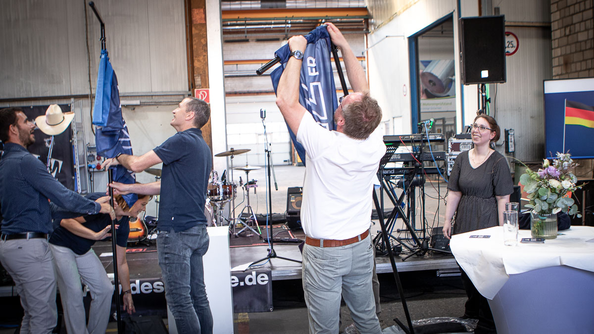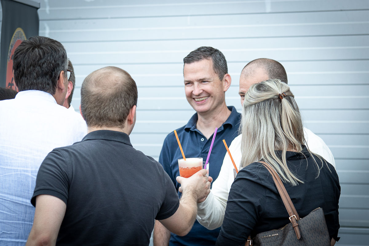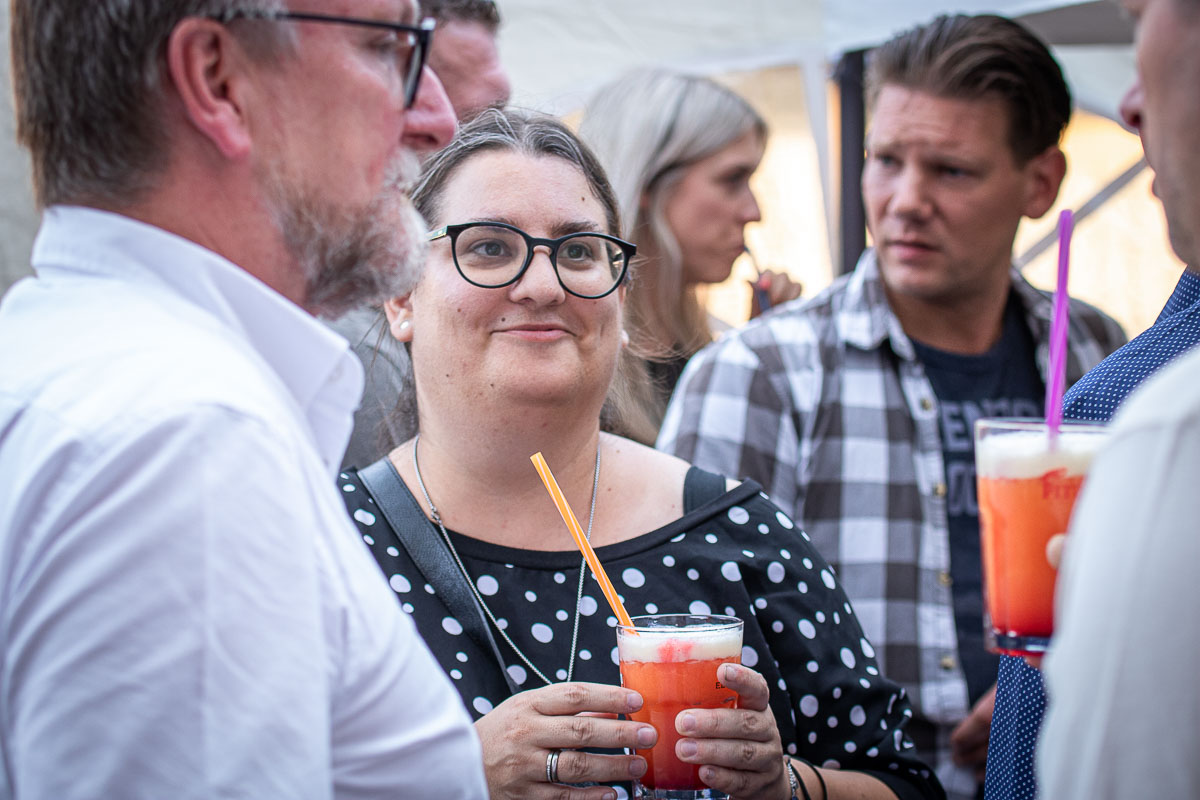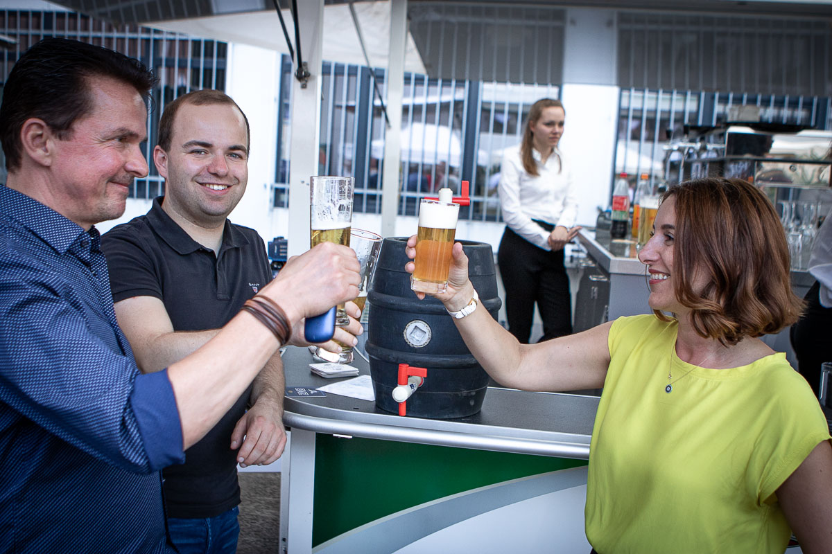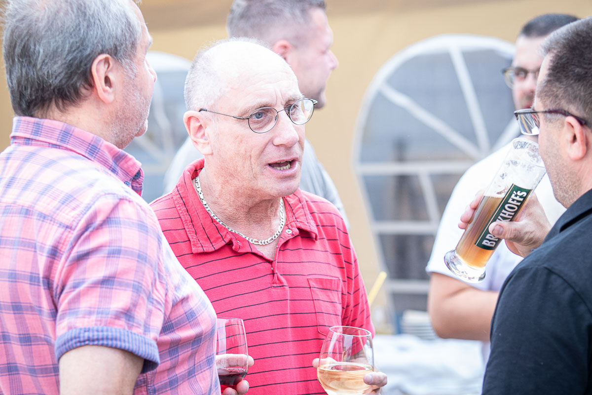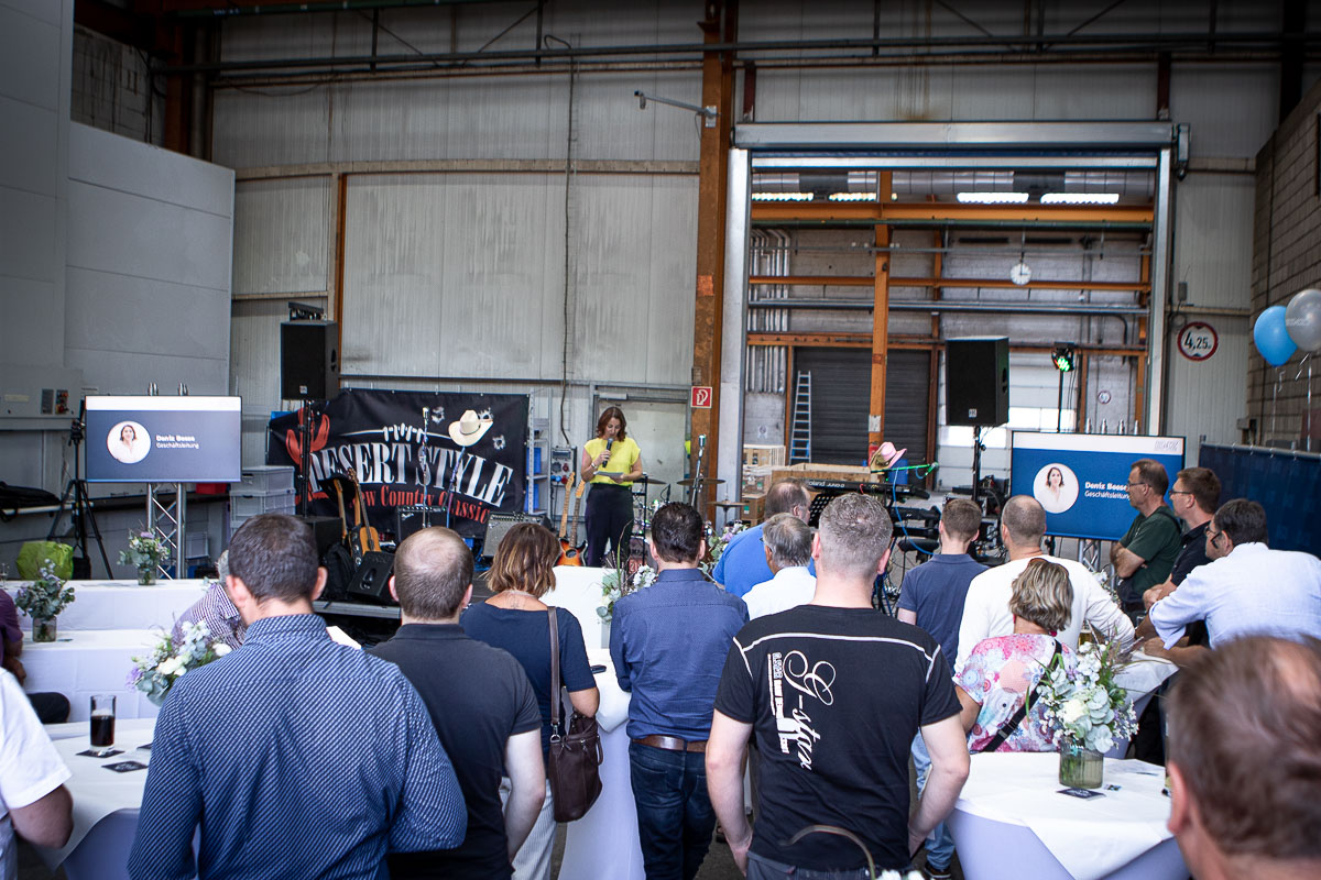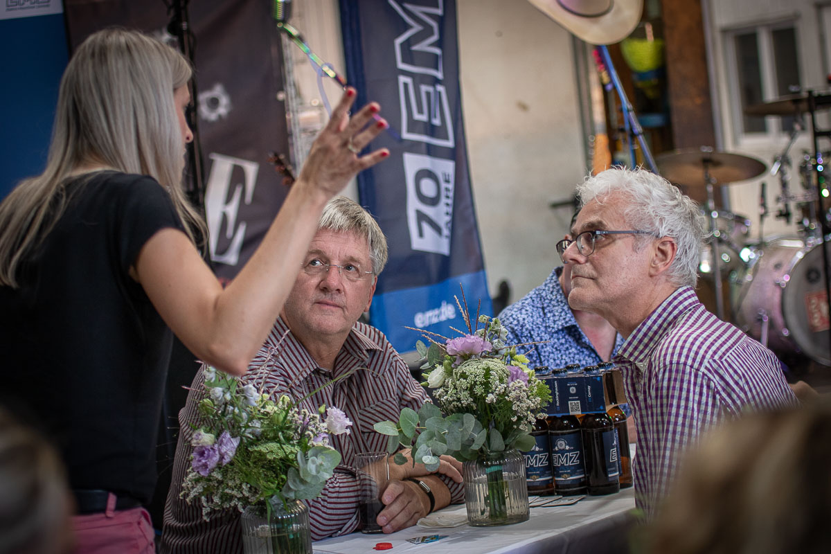 Offizieller Auftakt der Jubiläumsfeierlichkeit war Freitag, der 19. August 2022 am späten Nachmittag bei strahlend blauem Himmel und jeder Menge Sonnenschein auf dem Firmengelände der EMZ GmbH in Recklinghausen. Zahlreiche Gäste (darunter sowohl aktive als auch ehemalige Mitarbeiter), die der Einladung gefolgt waren, wurden von der Geschäftsführerin Deniz Beese und Geschäftsführer Dipl.-Ing. Benedikt Mathiaszyk mit kalten Getränken und einer Eröffnungsrede feierlich begrüßt. Nach der offiziellen Vorstellung des neuen Corporate Designs begann der ausgelassene festliche Teil, für dessen musikalische Untermalung die hiesige Country-Band „Desert Style“ sorgte. Währenddessen konnten Mitarbeiter und Ehemalige das eigens für das Firmenjubiläum gebraute und frisch durch die Geschäftsführung gezapfte EMZ-Bier verköstigen, erfrischende Cocktails und ein vielfältiges Outdoor-Buffet genießen.