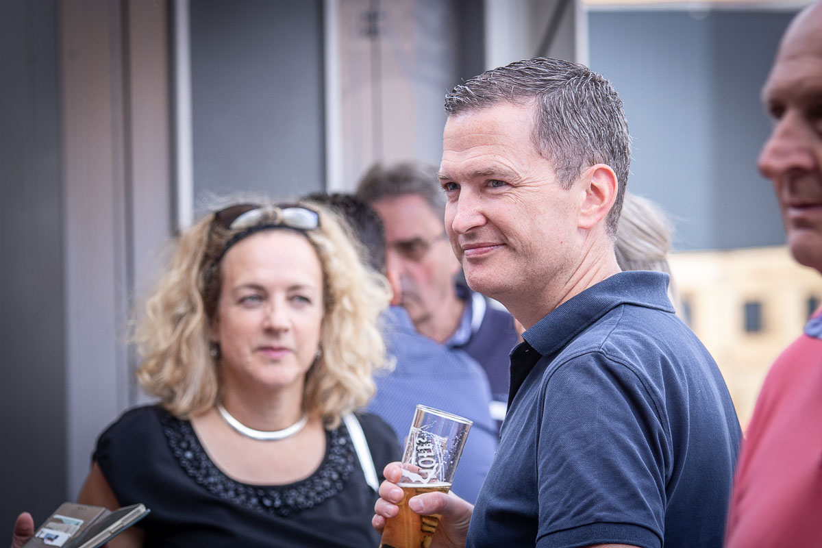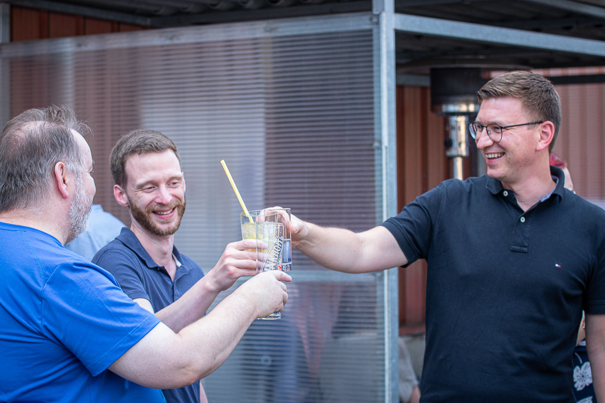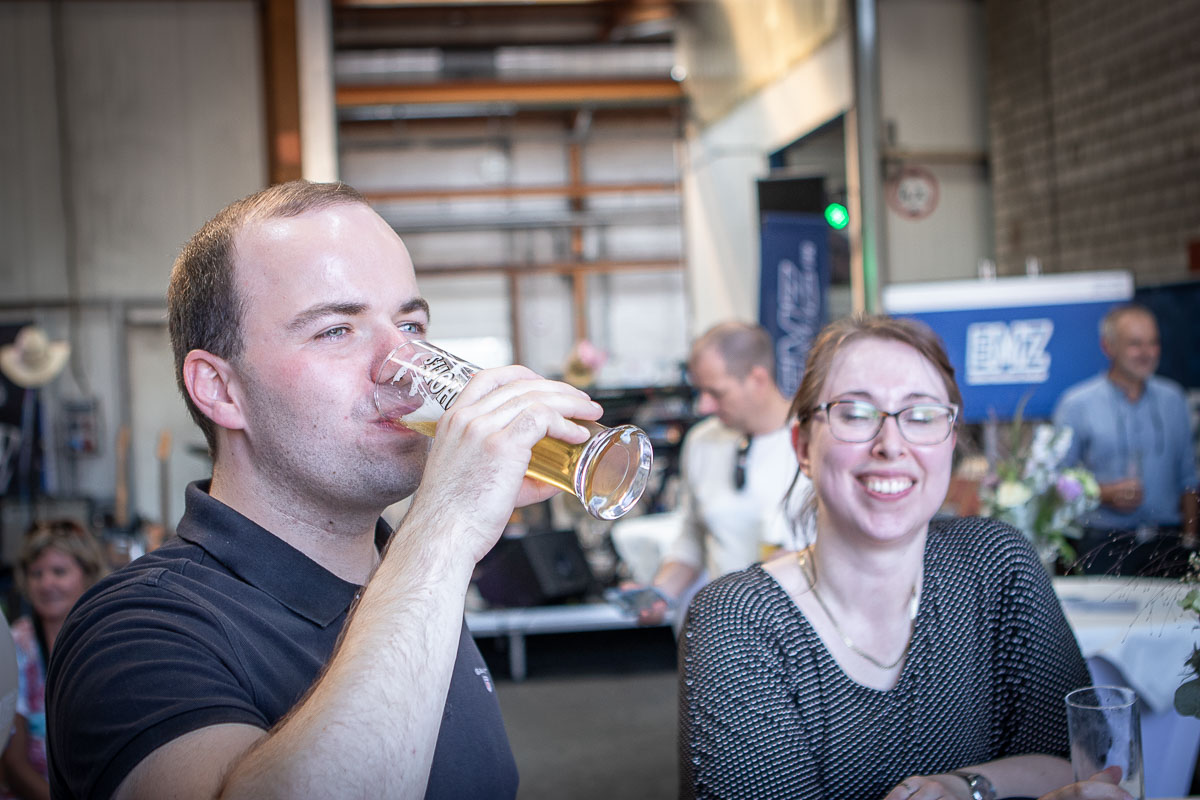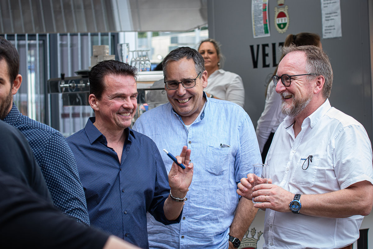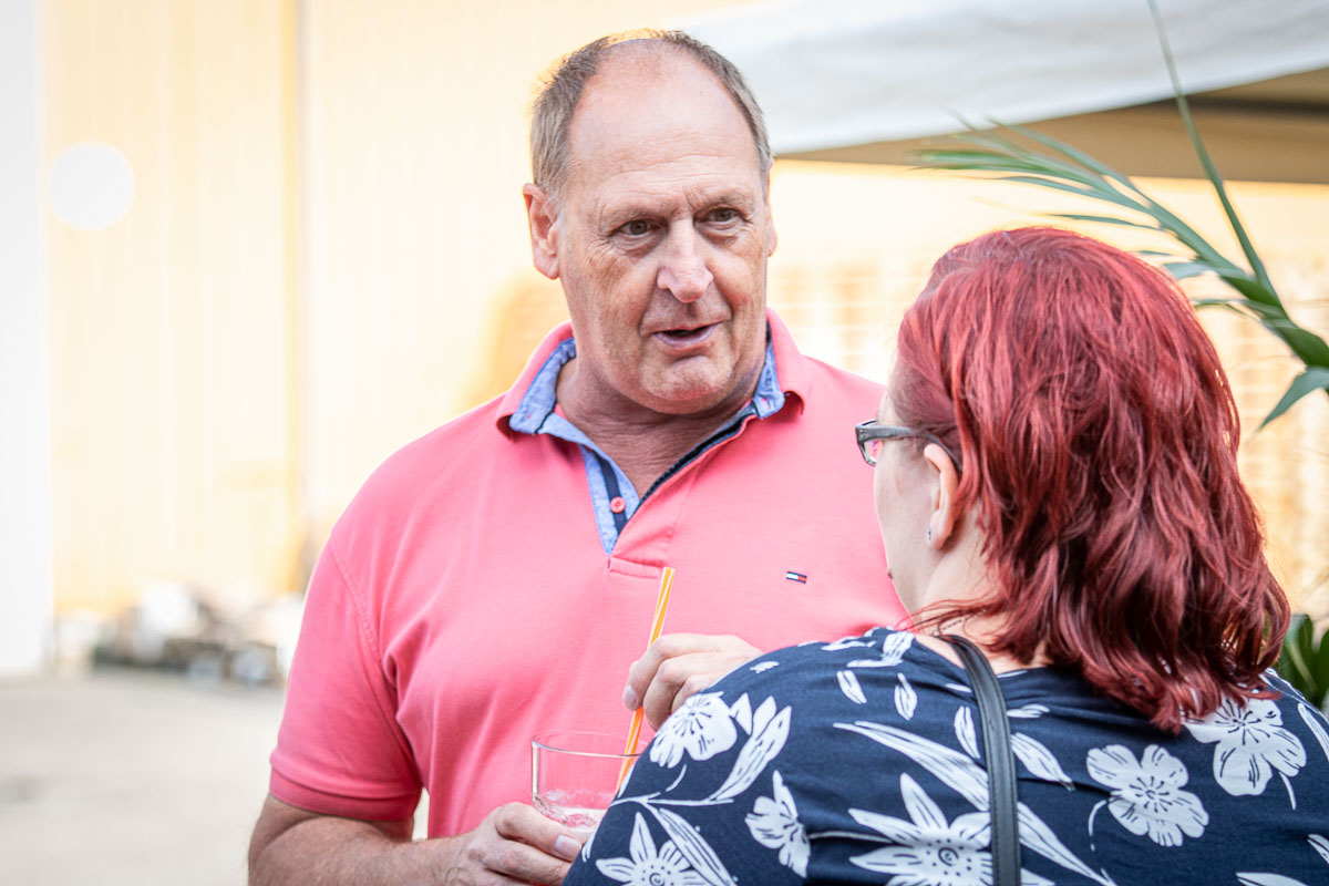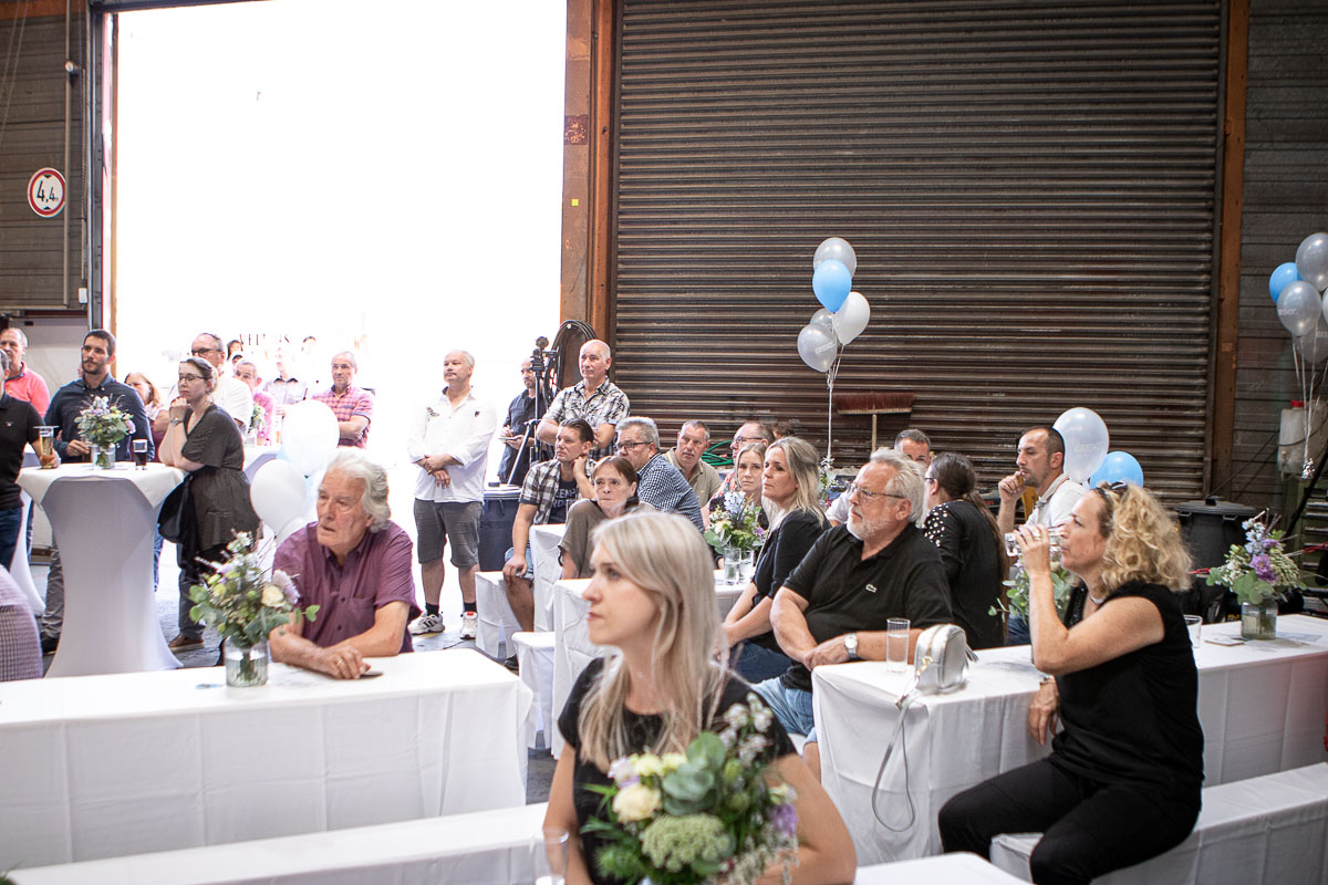 Offizieller Auftakt der Jubiläumsfeierlichkeit war Freitag, der 19. August 2022 am späten Nachmittag bei strahlend blauem Himmel und jeder Menge Sonnenschein auf dem Firmengelände der EMZ GmbH in Recklinghausen. Zahlreiche Gäste (darunter sowohl aktive als auch ehemalige Mitarbeiter), die der Einladung gefolgt waren, wurden von der Geschäftsführerin Deniz Beese und Geschäftsführer Dipl.-Ing. Benedikt Mathiaszyk mit kalten Getränken und einer Eröffnungsrede feierlich begrüßt. Nach der offiziellen Vorstellung des neuen Corporate Designs begann der ausgelassene festliche Teil, für dessen musikalische Untermalung die hiesige Country-Band „Desert Style“ sorgte. Währenddessen konnten Mitarbeiter und Ehemalige das eigens für das Firmenjubiläum gebraute und frisch durch die Geschäftsführung gezapfte EMZ-Bier verköstigen, erfrischende Cocktails und ein vielfältiges Outdoor-Buffet genießen.