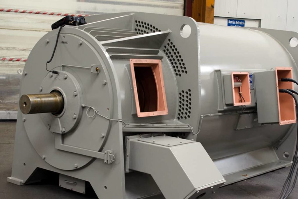 Fabrikat: EMZ | Leistung: 2.800 kW | Spannung: 6.600 V | Frequenz: 50 Hz | Drehzahl: 992 rpm | Schutzart: IP 55 | Kühlart: IC 511 | Gewicht: 16.500 kg